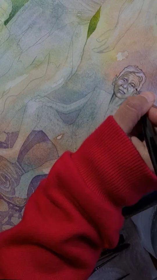 Rooted in the rhythms of shamanic living, my work weaves visionary watercolour, ceremony, and sound into sacred experiences of remembrance and transformation.