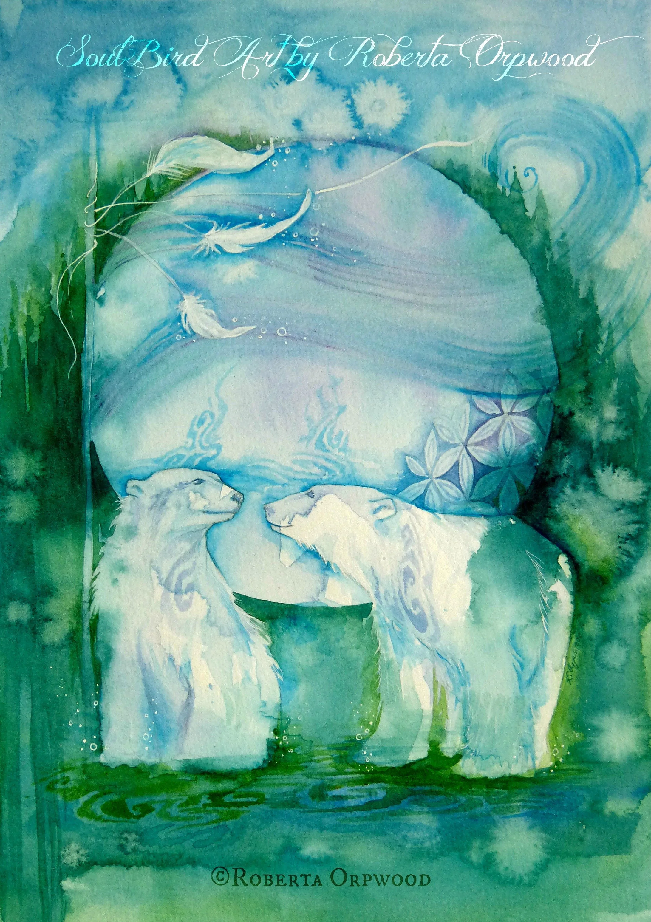 This small painting speaks of soul connection, the kind that feels ancient, protective and true. Polar Bear medicine carries strength, resilience and deep loyalty. Together, they remind us that even in the coldest landscapes, love is a living fire.